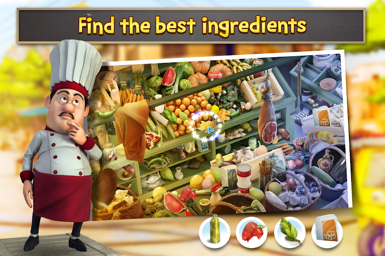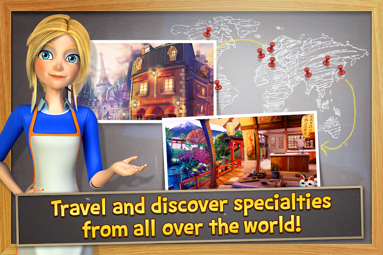 Pomozte Julianě čelit svému tvrdému konkurentovi Kyleovi a vyhrát výzvu Big Gourmet Chef: Kolem světové soutěže. Cestujte mnoha zeměmi na světě a hledejte ingredience a materiál vaření, které vám pomohou udělat skvělého šéfkuchaře. scenérie, jak objevíte různé místní speciality, od Evropy po Spojené státy, Brazílie, Indie, Rusko, Maroko, Kanada, Čína a Japonsko.