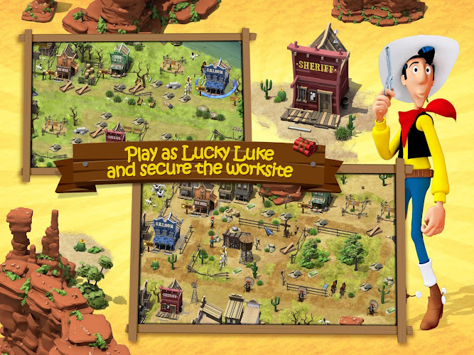 Náš příběh začíná v rozlehlých pláních Velké pánve na americkém západě. Po překonání výzvy pohoří Sierra Nevada se stavba železnice doplňuje. Bohužel, železnice byla nedávno sužována opakovanými útoky od nechvalně známých bratrů Dalton v jejich odhodlání dostat své chamtivé ruce na zásoby stavebních zdrojů. Tým West Construction se nikdy nedostane na setkání včas bez vaší pomoci!Lucky Luke byl poslán, aby posílil morálku dělníků a s vaší pomocí dohlížel na výstavbu. Jejich nekončící řada stále šílenějších požadavků je vážně ohrožující postup práce.