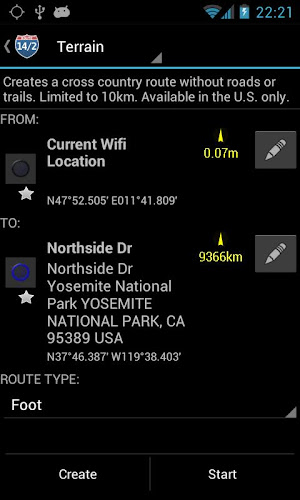 Vytvořte trasy, kde nejsou silnice nebo stezky.