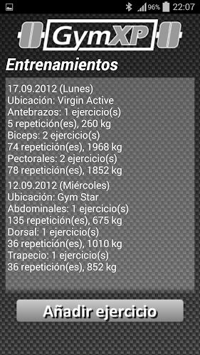 evidence tréninku v posilovně a kardiokaracterístic: • zaznamenejte si datum a počet opakování x váhu pro každou sadu tréninku v posilovně • obsahuje kompletní seznam cviků (150) pro každý sval a kardio skupinu • svalové skupiny: trapéz,deltoidy, biceps, triceps, předloktí, hrudník, břicho, spodní část zad, hýžďové svaly, záda, záda hamstringy, lýtka • zaznamenejte si datum, čas, vzdálenost, tepovou frekvenci, sklon a spálené kalorie během kardio tréninku