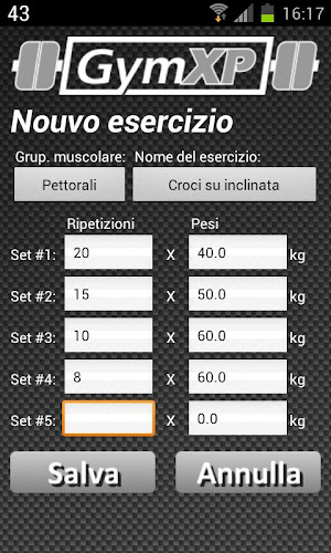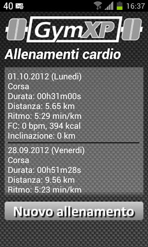 sledujte své tréninky v posilovně a kardiokatetiku: • zaznamenejte si datum a počet opakování x váhu pro každý cvik nastavený v posilovně • konfigurovatelný seznam (přidat / upravit / odstranit) cviků pro každou svalovou skupinu • svalové skupiny zahrnuté: břicho, předloktí, biceps, kardio, záda, kyčle, hýždě, nohy, hrudník, tricepsy záda, trapéz, tricepsy záznam datum, čas, vzdálenost, tepovou frekvenci, sklon a spálené kalorie během kardio cvičení