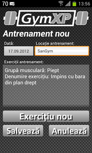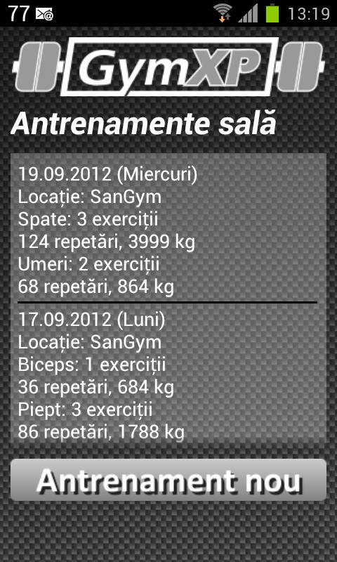 sledovat tréninky v posilovně a kardiocharakteristiky: • zaznamenat datum a počet opakování x váhu pro každou sadu tréninku v posilovně • nakonfigurovaný seznam (přidat / upravit / odstranit) cvičení pro každou svalovou skupinu • svalové skupiny zahrnují: břicho, přední část