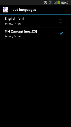 * také podporuje automatické dokončení. Nainstalujte prosím slovník auto-dokončení pro zawgyi. mm ”.
