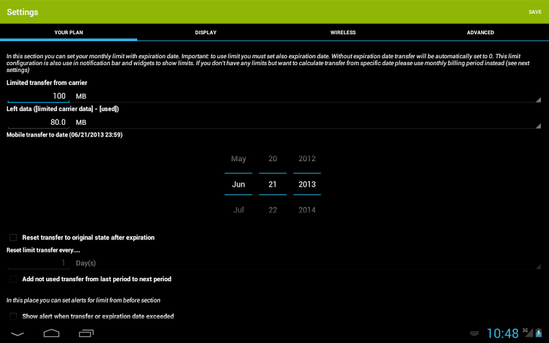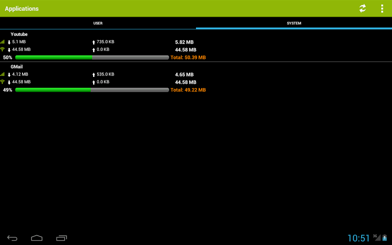 - Přenos používaný aplikací (req. Android> 2.1, nedostupný na Dell Streak)