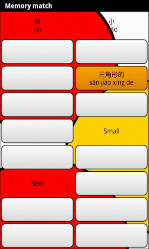 ☆ paměťová shoda: Překlopte přes dvě karty najednou, abyste našli čínské slovo a daný překlad, dokud nebyly nalezeny všechny páry. Komentáře k vylepšení.