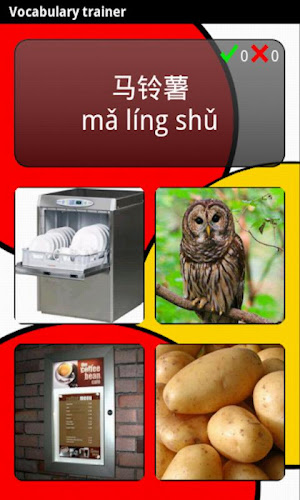 ☆ Vyvolání paměti: Zapamatujte si 5 čínských slov zobrazených do 15 sekund a poté z zobrazených možností vyberte správné anglické překlady.