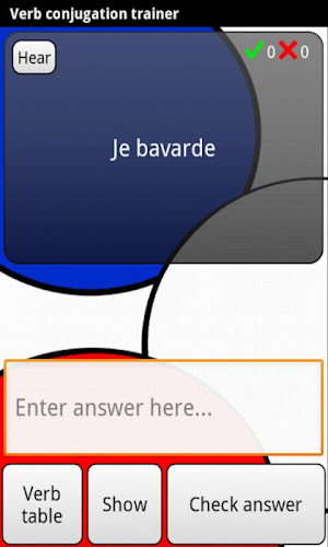 ☆ Verb conjugation trainer: practice the French verb conjugations for all the tenses by translating from French to English or vice-a-versa.