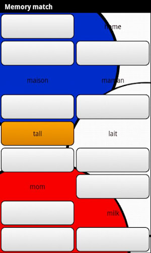 ☆ Memory match: flip over two cards at a time to find the French word and its given translation, until all pairs have been found.