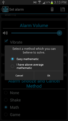 nebo si můžete vybrat matematickou řešení pro zrušení alarmové metody