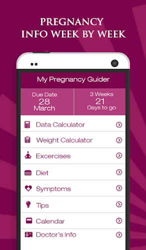 Můj těhotenský guider je aplikace pro správu času a zdraví vyvinuté pro nastávající ženy, které jim pomáhají během těhotenského období. Tato aplikace sdílí informace o tom, co mění ve vašem těle během různých fází těhotenství spolu s vývojem dítěte. Průvodce jídlem a cvičením je poskytnut, který pomáhá ženám s jejich stravou během těhotenství. Kalkulačka data:Zadejte očekávané datum dodání do správy těhotenského cyklu