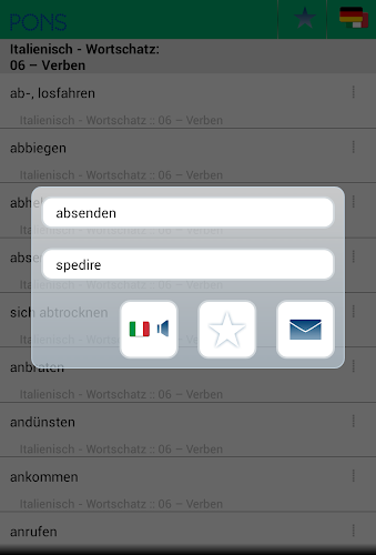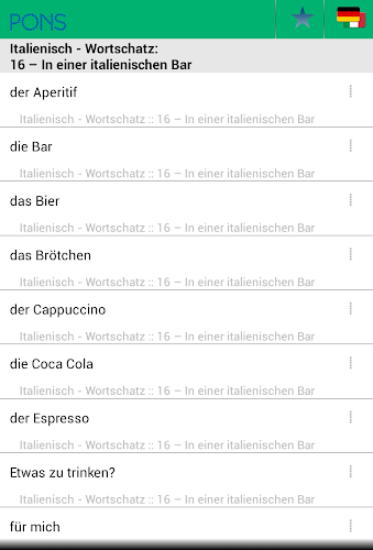 *** Naučte se ještě lepší slovní zásobu s trenérem slovní zásoby Pons. ***Nyní stáhnout: https://goo.gl/xw59mv • Italská zkouška, nejdůležitější slova pro nadcházející dovolenou nebo mezi nimi pro občerstvení: Doufejme, že tato aplikace pro vás byla nápovědou. Po mnoha letech nyní tuto aplikaci nahradíme trenérem slovní zásoby Pons. Takže se můžete ještě snadněji naučit slovní zásobu. A to podle osvědčeného systému, který již využil více než 500 000 studentů.