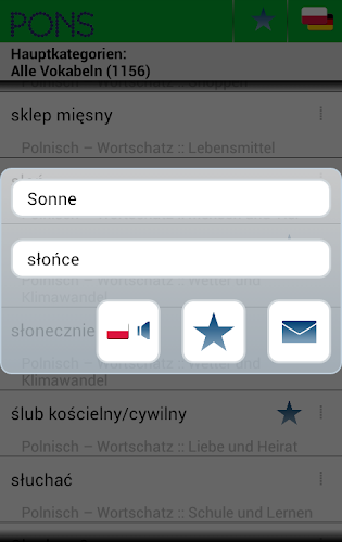 Veškerá slovní zásoba, kterou byste se mohli u této aplikace naučit, najdete také ve slovníku Pons. V trenéru slovní zásoby nastavte směr jazyka v polštině> němčině a klepněte na nákupní košík. Tam můžete načíst seznam slovní zásoby. Chtěli bychom se za to omluvit.