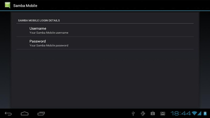Widget pro Samba Mobile ukazující, kolik MB jste zbývali na mobilní kartě Samba Mobile a na mobilní baterii Samba. Pro vaše mobilní uživatelské jméno a heslo Samba.o Samba: