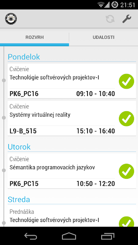 Aplikácia napomáha študentom zapamätať si presné časy cvičení a prednášok, no hlavne ich v určitom časovom predstihu upozorní na nasledujúce cvičenie alebo prednášku. Študenti si môžu zvoliť, na ktoré prednášky a cvičenia...
