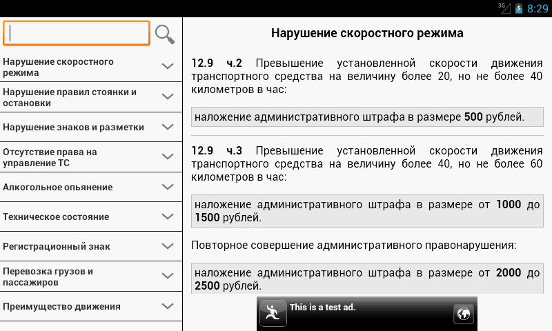 Также содержит информацию о действующих в настоящее время административных штрафах.