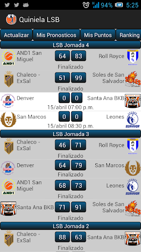 Aplicacion de la Quiniela de la Liga Superior de Baloncesto de El Salvador.Participa y apoya el Deporte Nacional