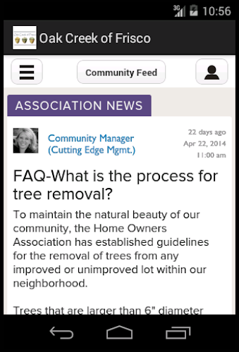 vítejte dubový potok obyvatel frisco v síti nabr. nabr network je mnohem víc než jen sociální síť, je to robustní sada komunikačních nástrojů vyvinutých speciálně pro komunitní sdružení.s nabr network, oak creek of frisco obyvatelé získávají bezprecedentní komunikační a kontrolní funkce speciálně vyvinuté podle skutečných potřeb komunity a jejich manažera. Síť nabr společnosti oak creek of frisco obsahuje komunitní zdroj, který funguje jako komunikační nástroj v reálném čase pro důležitá témata: zprávy o asociacích, upozornění na sledování, ztráty a nálezy, inzeráty, sociální a sousedské skupiny, abychom jmenovali alespoň některé.