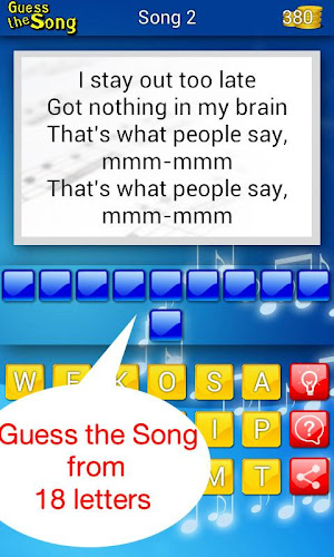 Hádejte, že píseň je hra, která vám umožní číst lyriku a hádat píseň s 18 písmeny a sledovat online hudební video.Píseň je nová a poslední aktualizace v hudebním grafu 2014–2015.