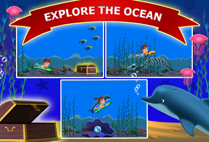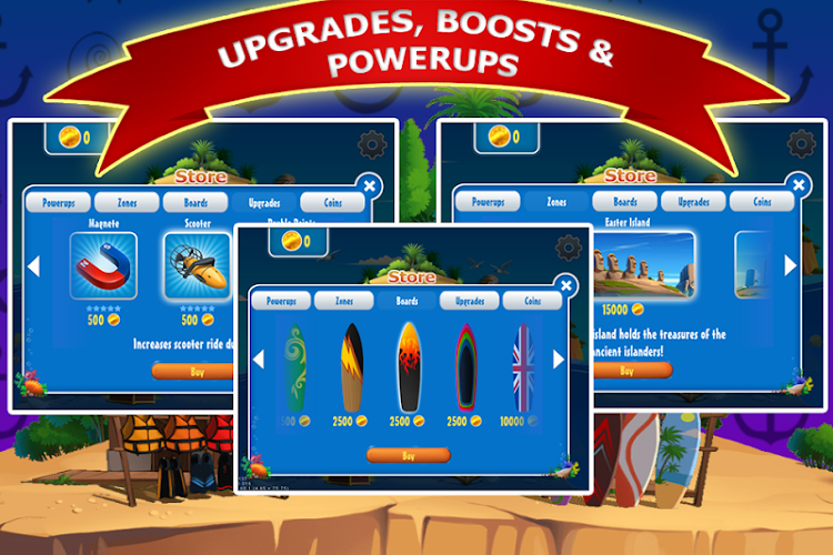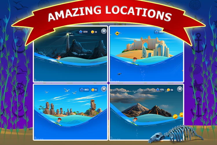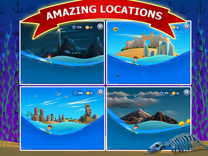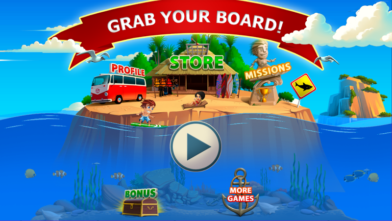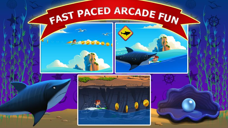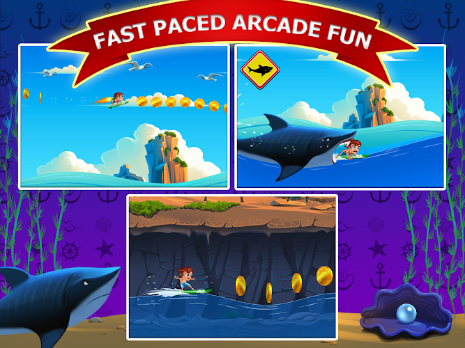 Banzai Surfer vám pošle na rychlý surfový výlet přes obrovské vlny: Útěk z nenasytných žraloků, najděte propuštěné poklady a jezdíte na delfínech, zatímco vy vlnu v této úchvatném směsi nekonečného běžce a simulace surfování!
