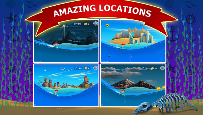 klepnutím nebo uvolněním obrazovky pouze jedním prstem můžete skočit, ponořit se, pádlovat a urychlit svého surfaře úžasně vysokou přesností. Nepočet úspěchů a power-upů čeká, až budou během hry odemčeny. #} ** Funkce **