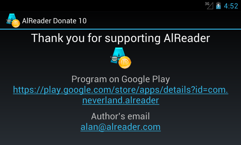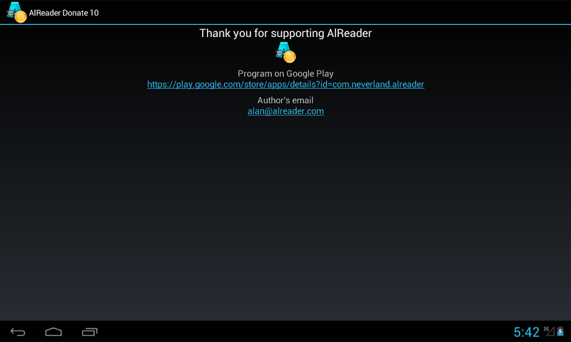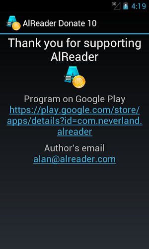 Analýza A Revize Aplikací Pro Android: AlReader Donate 10, Vyvinuté Společností Alan.Neverland. Uvedeno V Kategorii Knihy A Referenční Materiály. Aktuální Verze Je 1.0, Aktualizována Na 08/07/2014 . Podle Recenzí Uživatelů Na Google Play: AlReader Donate 10. Dosaženo Více Než 396 Instalací. AlReader Donate 10 Má V Současné Době Recenze 88, Průměrné Hodnocení 5.0 Hvězd