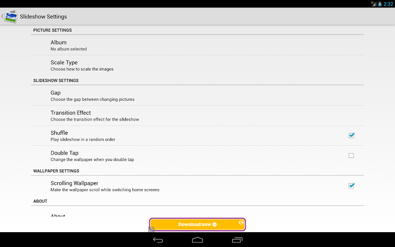 - Shuffle Nezastaví se dvakrát, dokud se neukážeme Premum. https://play.google.com/store/apps/details?id=com.nfwebdev.wallpaperslideshow.premium