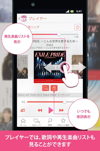 d Hits vám umožňuje poslouchat všechny programy, které distribuují pečlivě vybrané skladby z přibližně 1 milionu skladeb z „d Music“, se zaměřením na hity, jako je J-Pop! Rozdělte 500 programů podle umělce, žánru, éry atd....