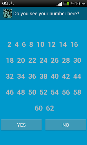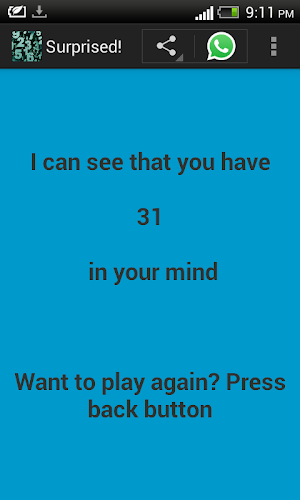 Tato aplikace si může jen přečíst vaši mysl a sdělit vám číslo, které máte ve své mysli.Požádá vás, abyste si v mysli nechali číslo a pak několik otázek na základě toho, aby vám sdělila vaše číslo.