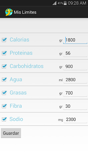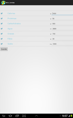 - Define tus limites de ingesta diaria, y selecciona el nutrientes que necesitas controlar.