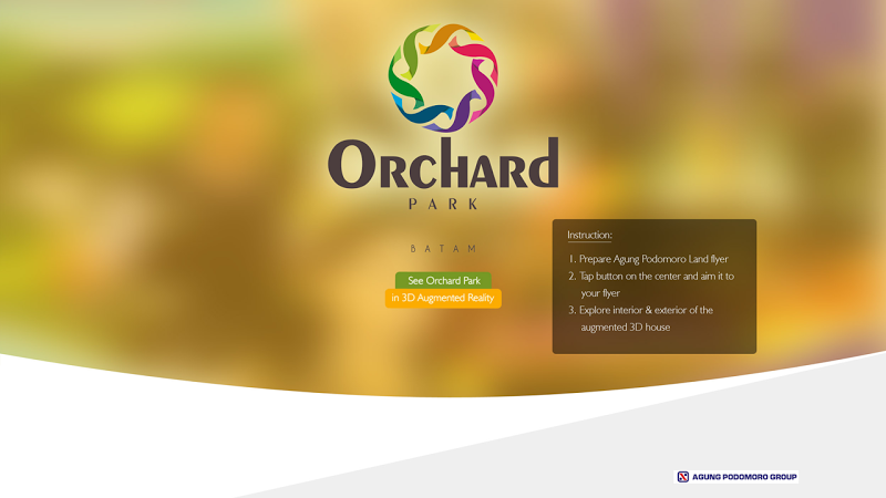 Agung Podomoro Land představuje první technologii rozšířené reality ve světě nemovitostí v Indonésii.Nyní si můžete přinést dům Orchard Park a diskutovat o něm se svou rodinou. Proveďte je vizuální procházkou inovace a průlom. Podívejte se na fasádu, 1. patro, 2. patro a okolí s 3D grafikou a získejte celý obrázek Orchard Park Batam's Unit