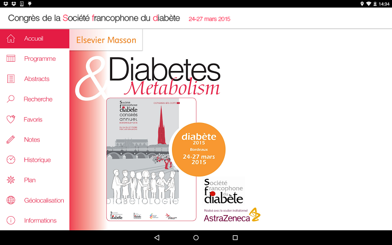 Najděte abstrakty Komunikační výroční konference Francophone Society of Diabetes od 24. do 27. března ve výstavním centru Bordeaux. Aplikace Elsevier Masson provedená s institucionální podporou Astra Zeneca.