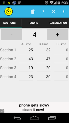 The deletion of the times entered via the trash icon .