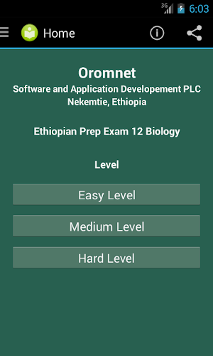 Tato aplikace obsahuje biologickou otázku a odpovědi z předchozího etiopského stupně 10 a 12 obecných školních certifikátů zkoumání (EGSLCE). Aplikace pomůže studentům a učitelům, kteří by chtěli otestovat jejich biologickou znalostí a také pro přípravu zkoušky. Pomocí této aplikace můžete prostudovat otázky a zjistit, jak moc jste připraveni, sdílejte své přátele a učitele některé otázky, také ušetřit vaše vysoké skóre.