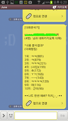 Analýza A Revize Aplikací Pro Android: 대화분석기(카톡대화), Vyvinuté Společností duaoddl. Uvedeno V Kategorii Zábava. Aktuální Verze Je V6Q, Aktualizována Na 04/03/2019 . Podle Recenzí Uživatelů Na Google Play: 대화분석기(카톡대화). Dosaženo Více Než 100 Tisíc Instalací. 대화분석기(카톡대화) Má V Současné Době Recenze 407, Průměrné Hodnocení 3.3 Hvězd
