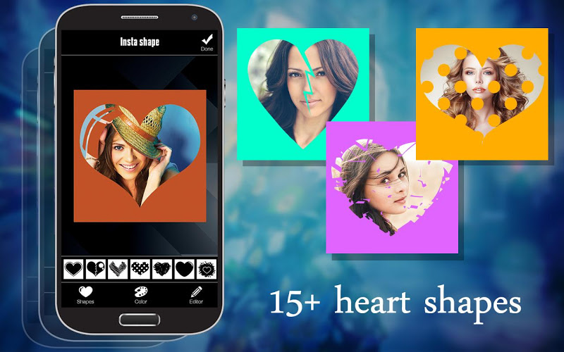 S snadno vytvořte ohromující tvary pro své krásné fotografie pomocí naší aplikace Pic Shapes. V této aplikaci PIC Shapes získáte spoustu tvarů, možnost přidat barvu do vašich tvarů a vestavěný editor fotografií, aby byl váš obrázek ještě přitažlivější. V současné době ve tvaru máme k dispozici kategorie srdce, přírody, zvířete a hvězd. V každé z těchto kategorií máme k dispozici mnohem více tvarů. Aplikace je navržena výhradně pro přidávání tvarů do vašich krásných obrázků2. V této aplikaci je zahrnuto mnoho populárních tvarů