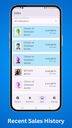 Monitorujte trh NFT bez námahy pomocí NFT Sales Tracker, vašeho inteligentního společníka pro sledování a udržování aktuálních informací o digitálních sběratelských předmětech v reálném čase. Dostávejte okamžitá upozornění, kdykoli se prodají NFT ve vašem seznamu sledovaných položek, což vám pomůže učinit včasná a informovaná rozhodnutí o vašich aktivech. Naše aplikace zajišťuje, že získáte přesná data v reálném čase přímo do vašeho zařízení.Klíčové vlastnosti: