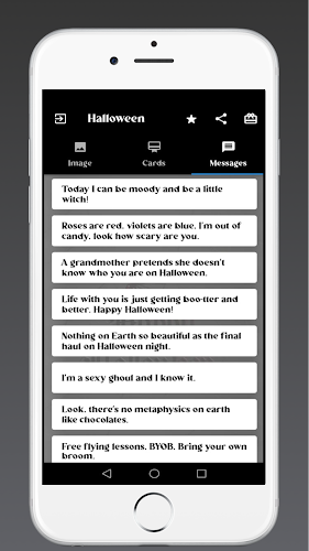 Zde vám poskytujeme nejnovější, krásnou a úžasnou aplikaci Halloween Greetings s pěkným a atraktivním designem. můžete tuto aplikaci používat online nebo offline. Aktualizujeme každý týden nové zprávy o Halloweenu.