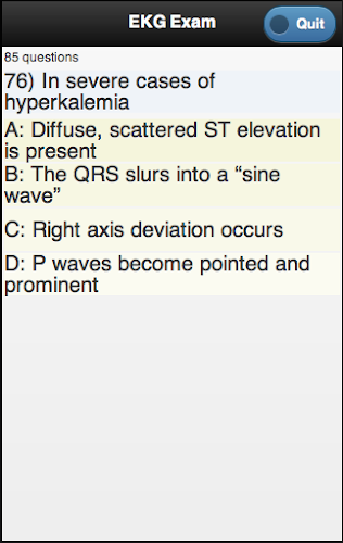 Akademie ECG je rychlá referenční a interaktivní studijní příručka pro proužky elektrokardiogramu (EKG nebo EKG). Je poskytnuto více než 100 kvízových otázek, které zahrnují jak sekci EKG lékařského základního materiálu, tak i sekci „Název This Strip“, abyste zjistili, zda můžete identifikovat pás, který vidíte. Je to zábavný způsob, jak zkontrolovat, co víte, a udržet své dovednosti ostré.Kromě interaktivních kvízů můžete procházet přes 75 proužků, které přicházejí s krátkou diskusí a poukazují na klíčové vlastnosti a možné příčiny. Spolu s diagramem měření a 12 diagramu umístění olova se můžete jen naučit něco nového (nebo si pamatovat něco starého)!