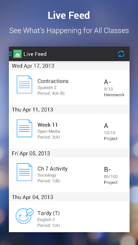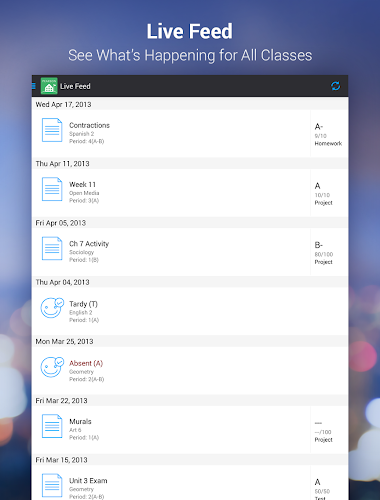 Viz živá účast, úkoly, skóre, známky a další, přímo z knih o třídě vašich učitelů.Nyní s snadným procesem nastavení přístupu!