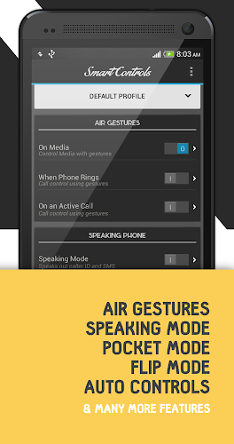 Analýza A Revize Aplikací Pro Android: Smart Controls: Air Gestures, Vyvinuté Společností Sparkine Labs. Uvedeno V Kategorii Nástroje. Aktuální Verze Je 1.11, Aktualizována Na 09/05/2015 . Podle Recenzí Uživatelů Na Google Play: Smart Controls: Air Gestures. Dosaženo Více Než 100 Tisíc Instalací. Smart Controls: Air Gestures Má V Současné Době Recenze 1 Tisíc, Průměrné Hodnocení 3.8 Hvězd