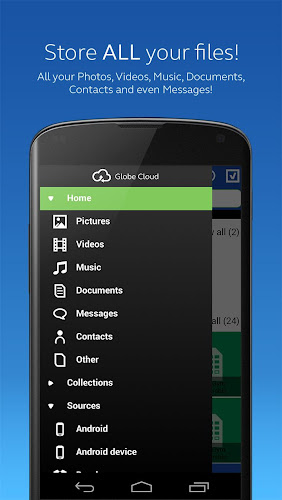 Globe Cloud je služba cloudového úložiště a sdílení z Globe vytvořené, aby vám pomohla pohodlně spravovat váš digitální život. Přistupujte k kontaktům a textovým zprávám z jakéhokoli zařízení jejich synchronizací z telefonu do vašeho cloudového účtu Globe. Můžete také ukládat a přistupovat k vašim fotografiím, dokumentům a dalším digitálním souborům v Globe Cloud pomocí telefonu, tabletu nebo počítače.-uložte své digitální soubory: fotografie, videa, kontakty, textové zprávy, kancelářské soubory, další dokumenty