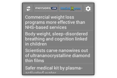 Nový widget pro Android 3 (Honeycomb) a Android 4 (Ice Cream Sandwich) zařízení kombinuje nejnovější vědecké a technologické zprávy z PhysOrg.com a lékařský výzkum a zdravotní zprávy od lékařských XPress.Funkce zahrnují: