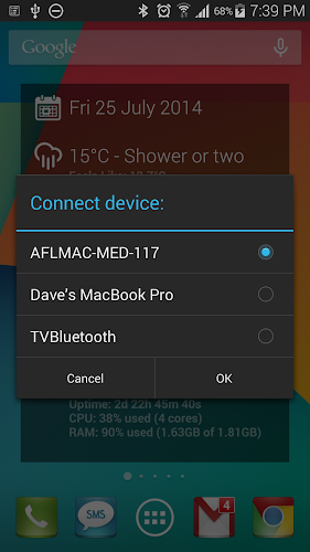 • přepínat váš aktuální stav bluetooth (připojeno#) při spárování všech zařízení s jedním bluetooth je povoleno)