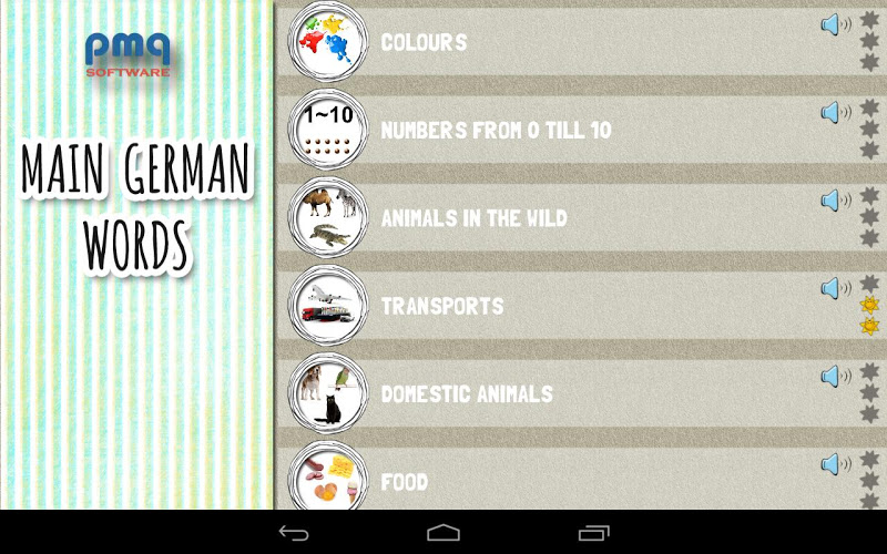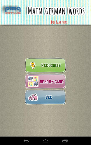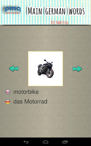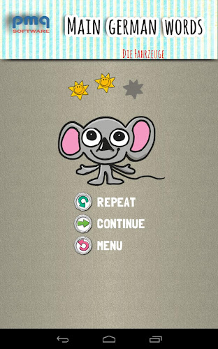 Tam je šest obrázků zobrazí a jedno slovo je číst v německém jazyce. Pokud jste zápas správné obraz pak můžete pokračovat na další slovo. Pokud jste zvolili špatně obrázek, pak je označen a váš výběr může pokračovat. Každý špatný pokus je si pamatoval a slova se opakují na konci.