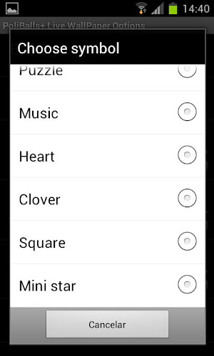 Získejte plnou verzi !! Můžete si vybrat více než 16 různých symbolů, velikosti, povolit nebo deaktivovat rotace, barvu průhlednosti a intenzity. } K dispozici také jako Windows Screen Screenver na adrese http://polilabs.com/Portfolio/poliballs-screensaver-para-windows/; Tapety -> Vyberte Poliballs ze seznamu
