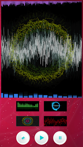 Tento přehrávač Visualizer Media Visualizer přináší vaši hudbu na obrazovku při explozi jasných barev. Společně. 🎶 Vizualizér Line. 🎶 Circle Visualizer. 🎶 bar Vizualizer. a přehrajte svůj soubor, vyzváněcí tóny od...