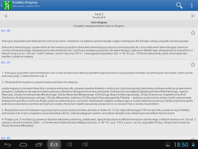 Kód aplikací je pohodlný způsob, jak získat přístup k úplnému obsahu zákona na silničním provozu (kód dálnice) přímo na vašem telefonu nebo Tablecie.aplikacja je neocenitelnou pomocí pro každého řidiče, poznal polská předpisy...