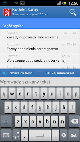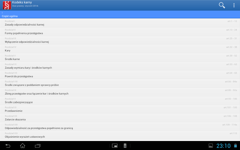 application Penal Code and criminal law is a convenient access to the full contents of the Penal Code Act directly on your phone or tablecie.aplikacja is an invaluable aid in the work of lawyers, solicitors, judges and law students.is very clear and easy to obsłudze.funkcjonalność application Penal Code: - full text of the Penal Code Act in off-line mode, - readability and ease of use - criminal law in Polish, additional functionality to subscribe to: - no ads - intuitive