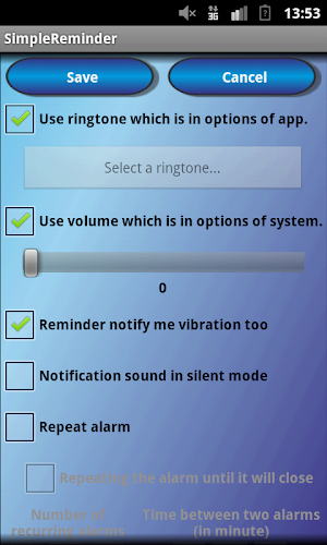 Poznámka je vysoce konfigurovatelná. S jednoduchým připomenutím můžete snadno nastavit varování, které se bude pravidelně opakovat. Všechna oznámení můžete nastavit další vlastnosti zvuku, vibrace, vibrace, vibrace, hlasitosti a opakování. Vyberte obrázky pro každý alarmy.