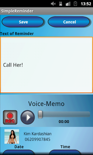 Můžete si vybrat foneNumber z kontaktního seznamu, který chcete volat s připomenutím. Připomínka byste chtěli smazat.